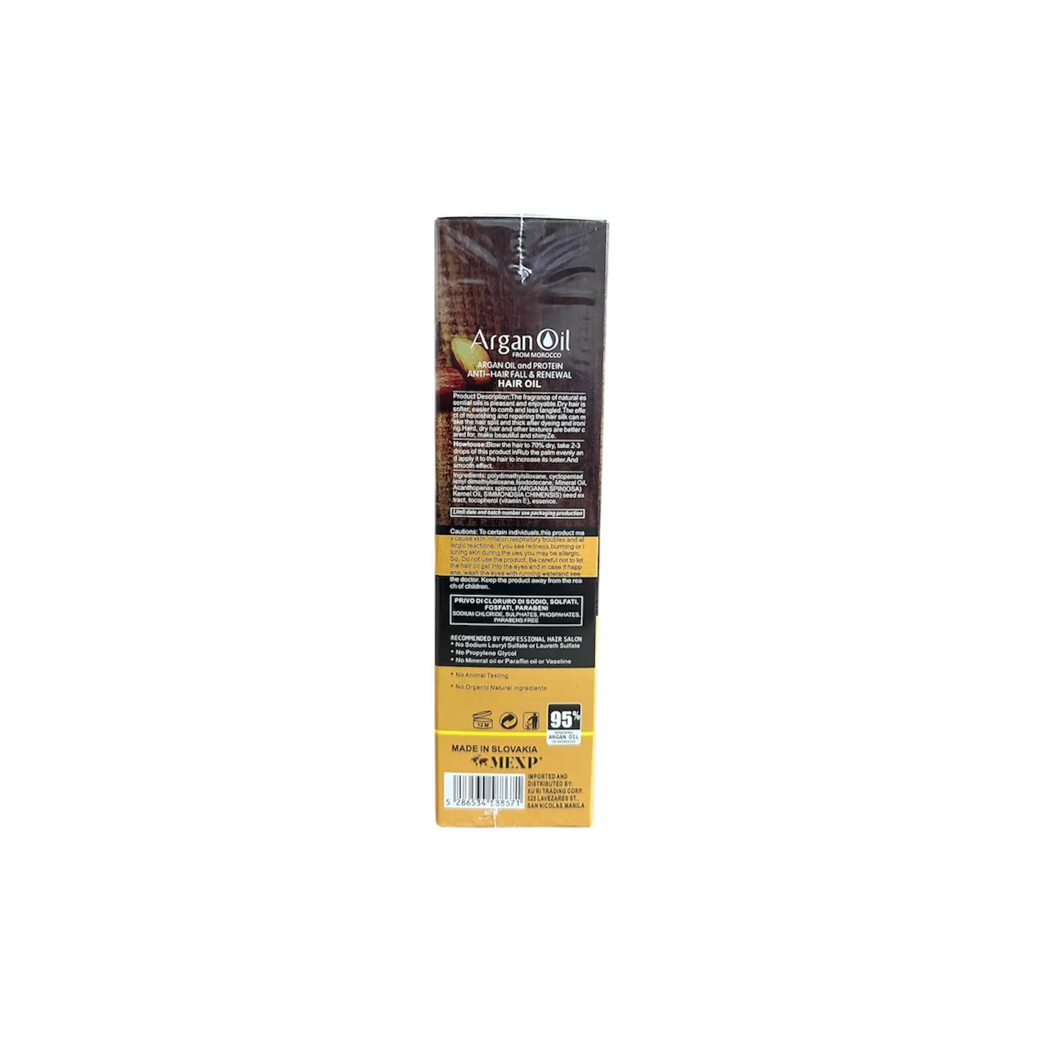 روغن آرگان از دانههای درخت آرگان مراکش استخراج میشود و سرشار از ویتامین E و اسیدهای چرب امگا است. این ترکیبات، آسیبهای ناشی از خشکی و نازکی و ضعیف شدن موها جلوگیری و ترمیم می کند.کیفیت این محصول اورجینال بسیار بالاست و قدرت ترمیم کنندگی موهای آسیب دیده را در مدت زمانی کوتاه دارد.