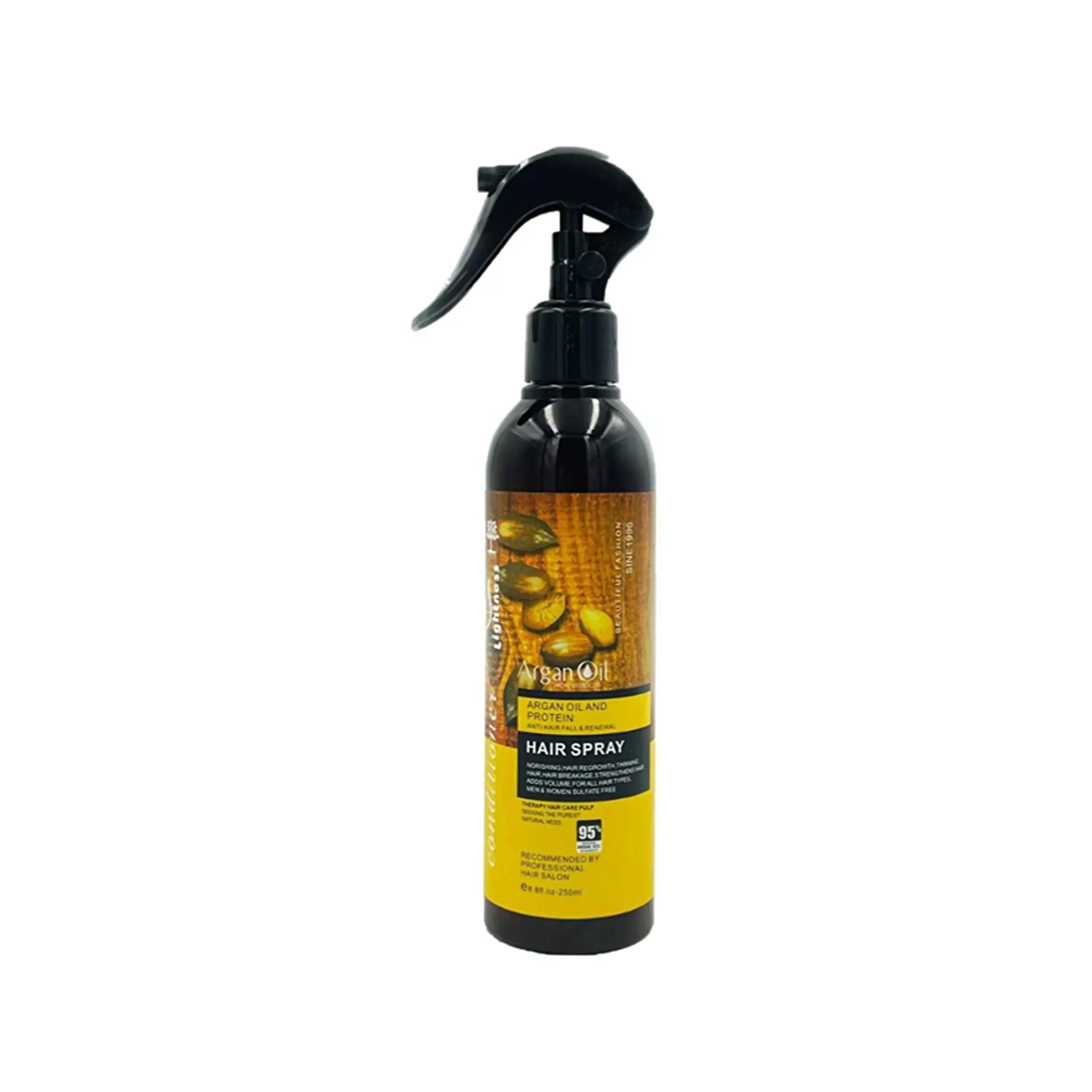 اسپری دو فاز: قبل از خشک کردن کامل و موی نم دار، ۲–۳ بار اسپری کنید و با دست مرتب کنید.